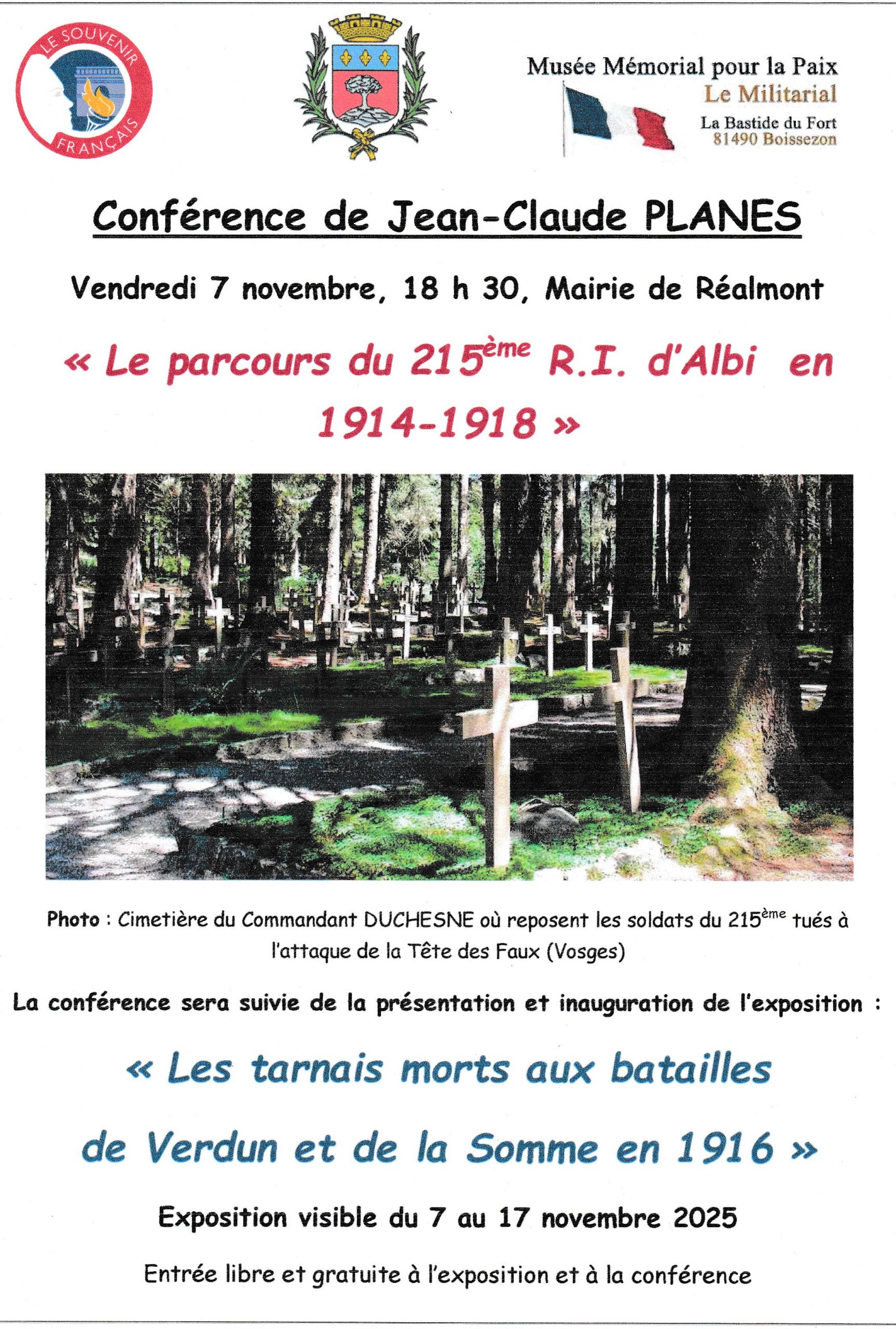 Musée Mémorial pour la Paix - Le Militarial > Actualités > Actualités > 7 novembre conférence à Réalmont