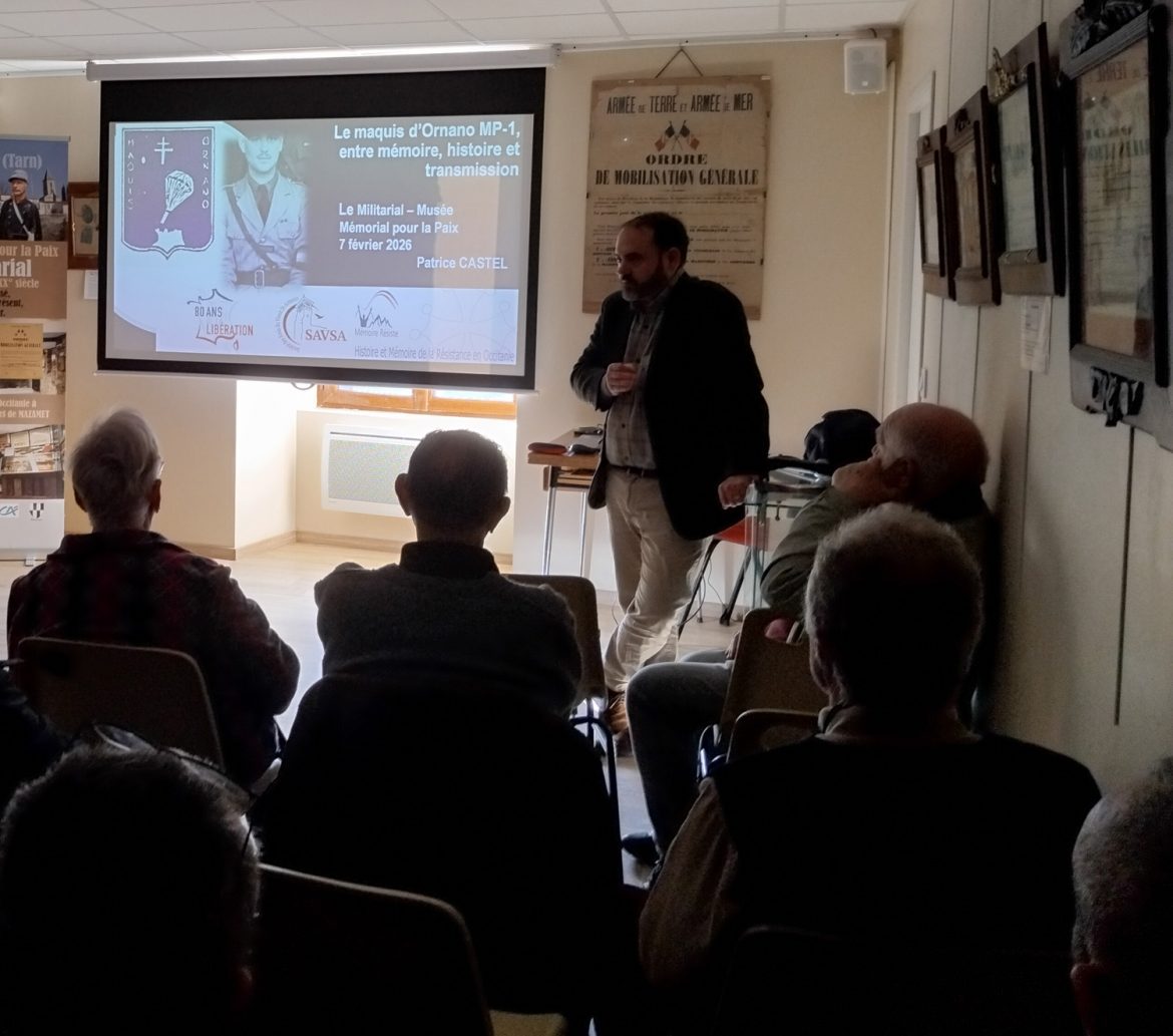 Samedi 7 février Patrice Castel, Professeur d’Histoire, Président de l’association Mémoire Résiste : histoire et mémoire de la Résistance en Occitanie, nous a présenté le maquis Ornano- MP1 (maquis de Penne numéro 1). Ce maquis de l’Armée secrète (obédience gaulliste) qui a oeuvré aux limites des départements du Tarn et du Tarn et Garonne était « spécialisé » dans les parachutages. Le conférencier a bien expliqué comment s’est créé ce maquis, présenté les hommes qui l’ont constitué et les actions menées dont celle du 21 avril 1944 qui a coûté la vie à 6 maquisards. Patrice Castel a bien expliqué le déroulement des parachutages, de l’annonce du message de la BBC, au largage et récupération du matériel. Une conférence suivie par une trentaine de personnes très intéressés par cette conférence unanimement appréciée. En introduction Patrice Castel avait présenté un film que vous pouvez retrouver via notre site http://lemilitarial.com rubrique « Maquis Tarnais » ou directement https://www.youtube.com/watch?v=x0LpbgcsdBo.
