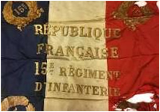 Dans le rapport accompagnant le drapeau du 15ème RIA, le rédacteur indique que seules la soie et la cravate du drapeau en service en 1939-1940 sont versées au service historique de l’Armée de terre le 15 mars 1945, avant de rejoindre, le 20 mai 1947, la salle des emblèmes au fort de Vincennes (Val de Marne).