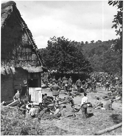 Regroupement de prisonniers français dans une ferme – Collection Hervé Savary
